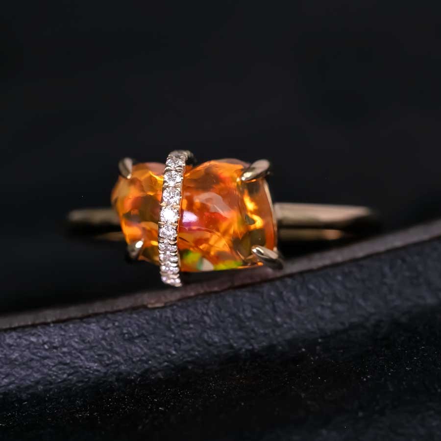Opal—the queen of gemstones, is one of the most beautiful and rarest gemstones on earth. Every piece of opals has its colors and patterns, which is perfect for designers to create unique engagement rings for someone extra special. Our jewelry uses 100% Natural & Ethical opal stones (NO synthetics or imitations).