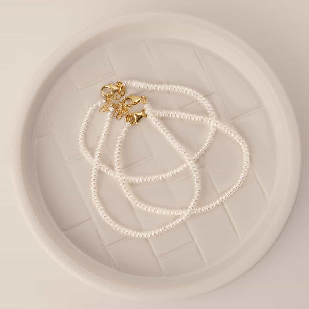 Our pearl bracelet features genuine button pearls and is cute as can be. Wear it alone or get a sweet deal on three.
