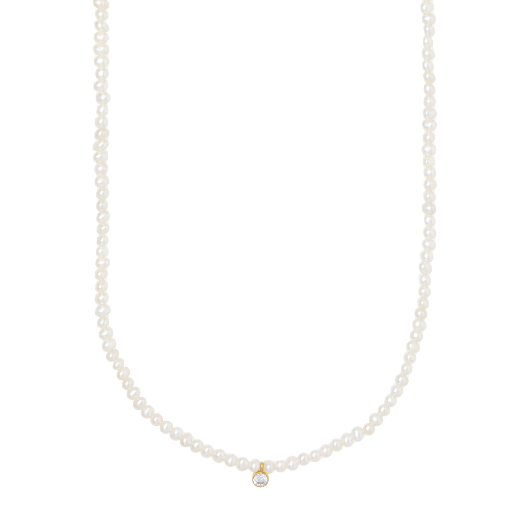 Our pearl beaded necklace is just the sweetest addition to your neck mess.  Freshwater seed pearls are strung on silk with a petite crystal pendant.