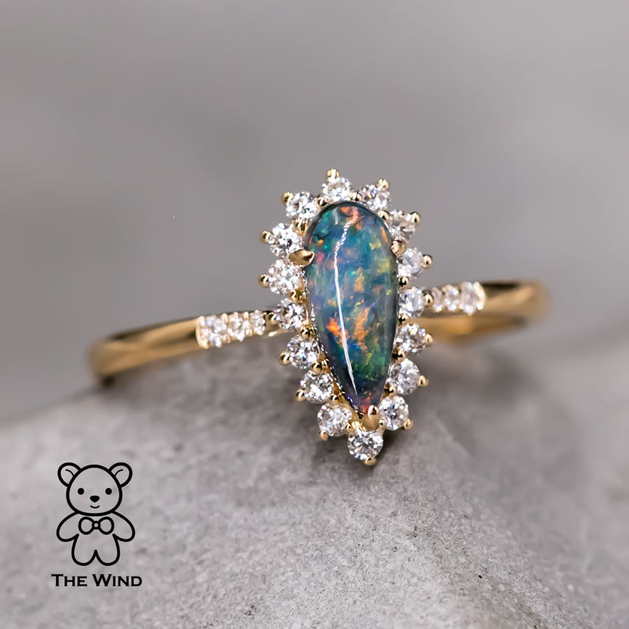 Opal—the queen of gemstones, is one of the most beautiful and rarest gemstones on earth. Every piece of opals has its colors and patterns, which is perfect for designers to create unique engagement rings for someone extra special. Our jewelry uses 100% Natural & Ethical opal stones (NO synthetics or imitations).