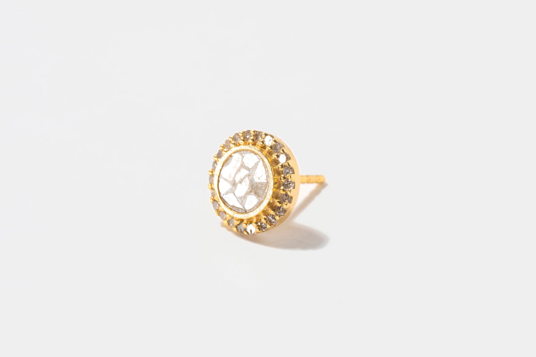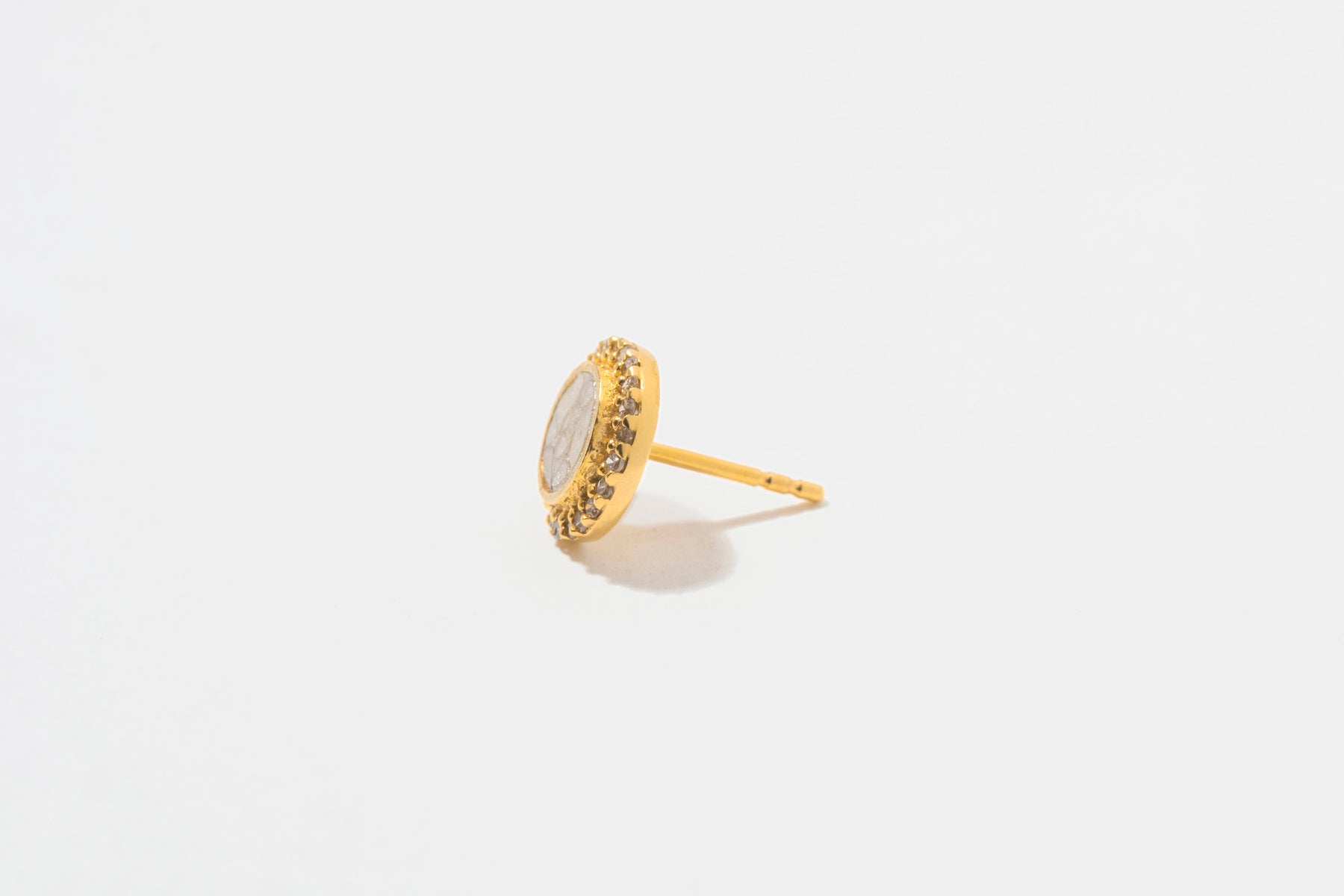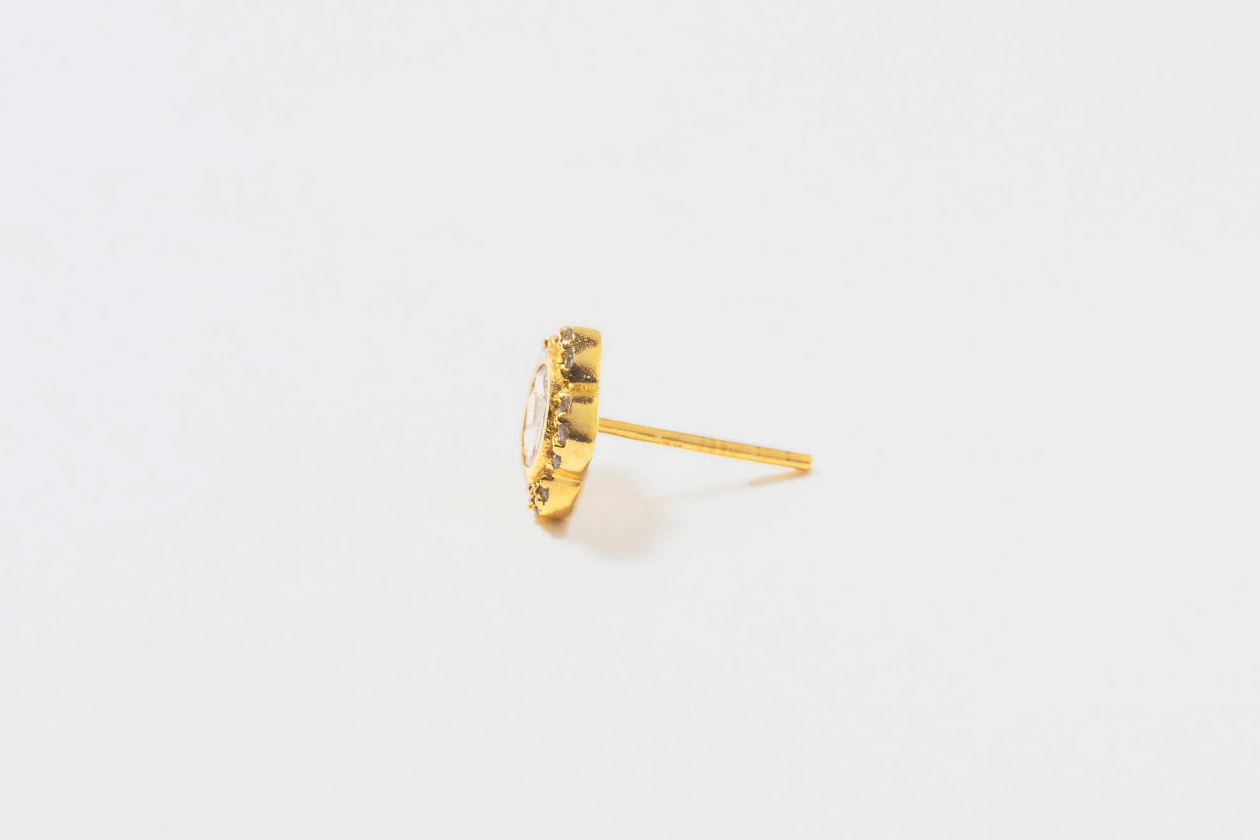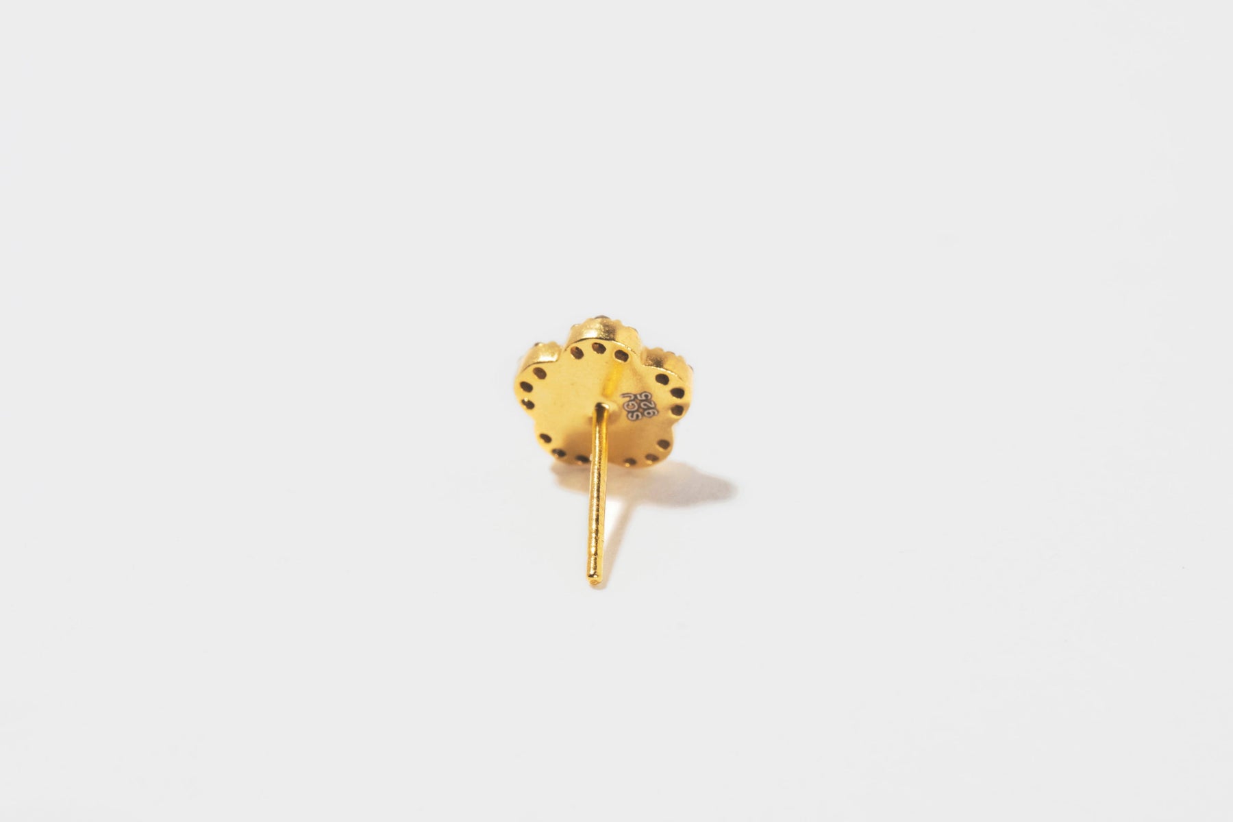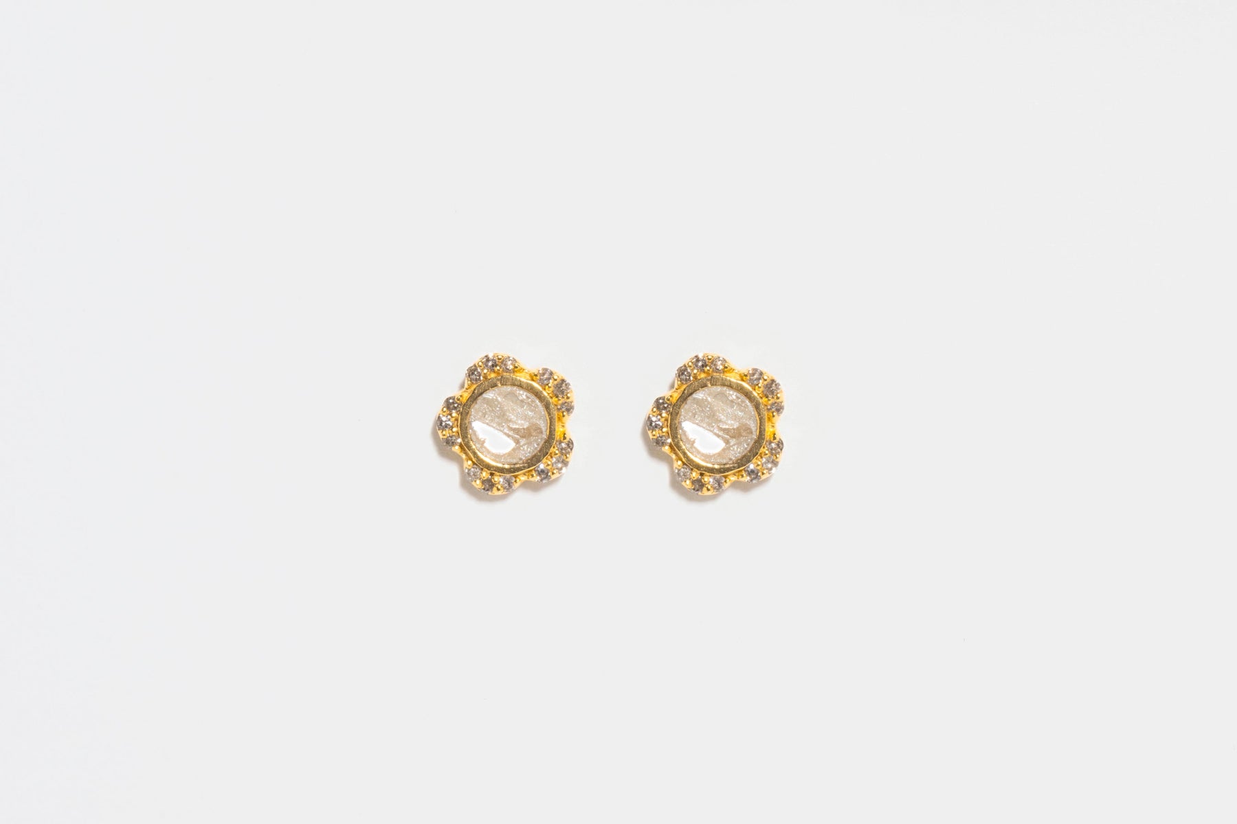 Plum Blossom Sakura Flower Australian Solid Opal Diamond Stud Earrings 14k Yellow Gold.