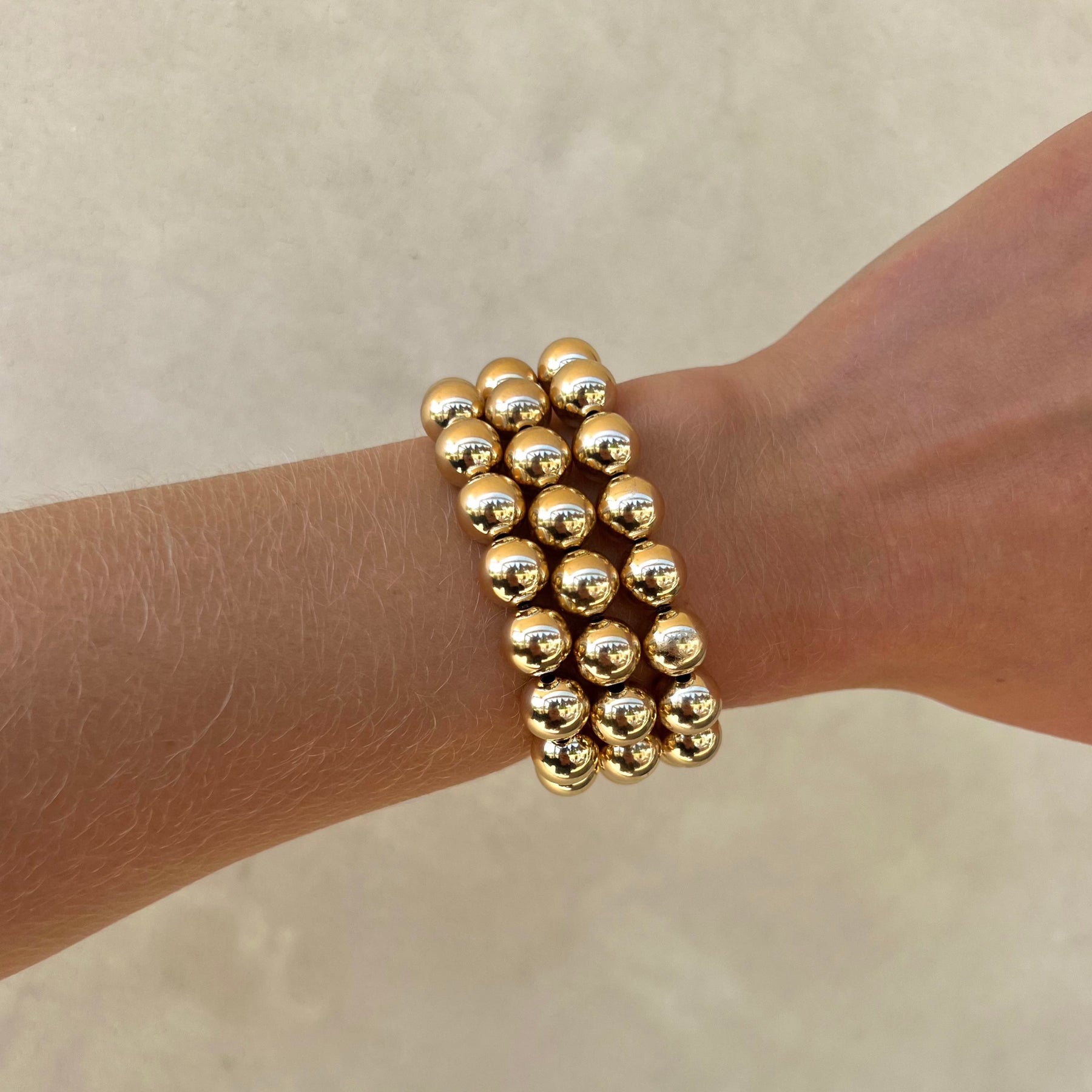 Our extended size 10mm piece is made to order. Since larger beads allow room to size up in sizing, there is one wrist size for 7.25-7.75.