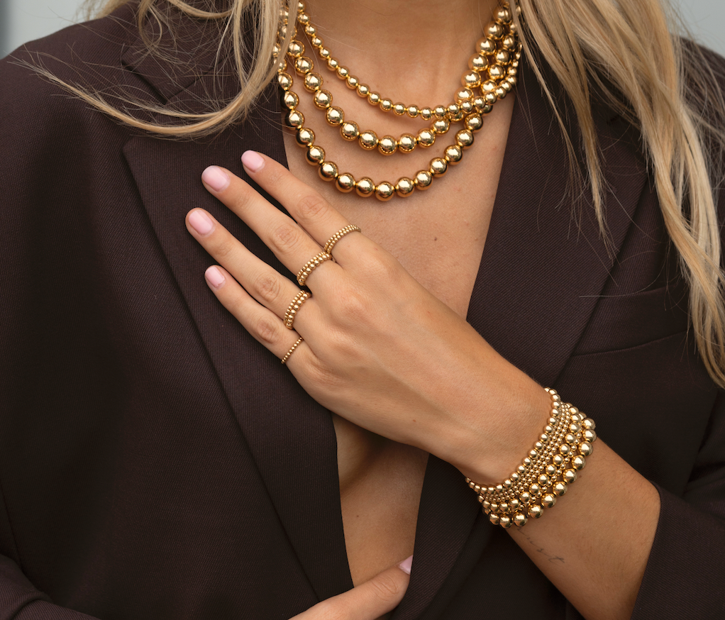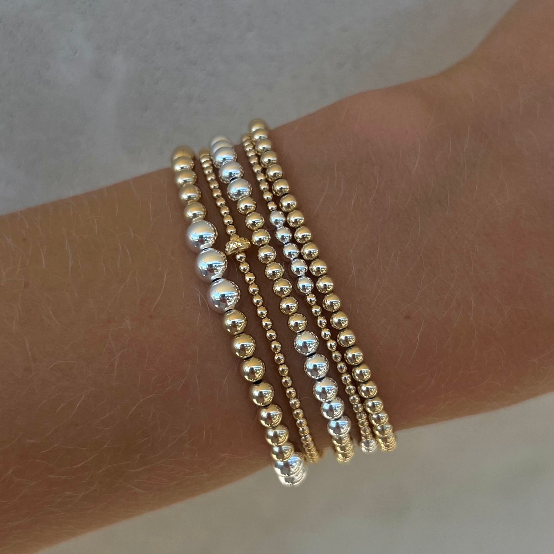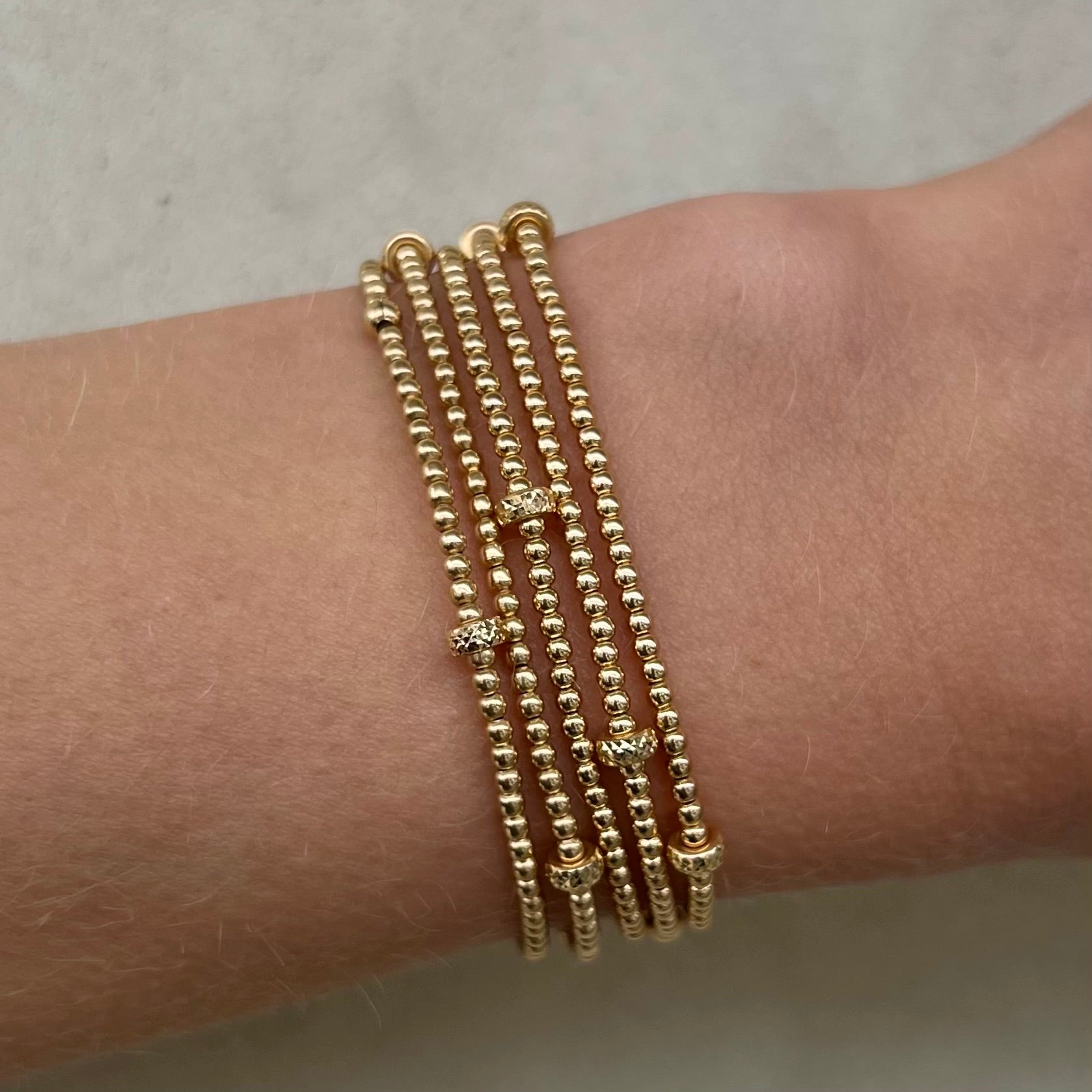 Strung on an elastic cord, offering a slight stretch