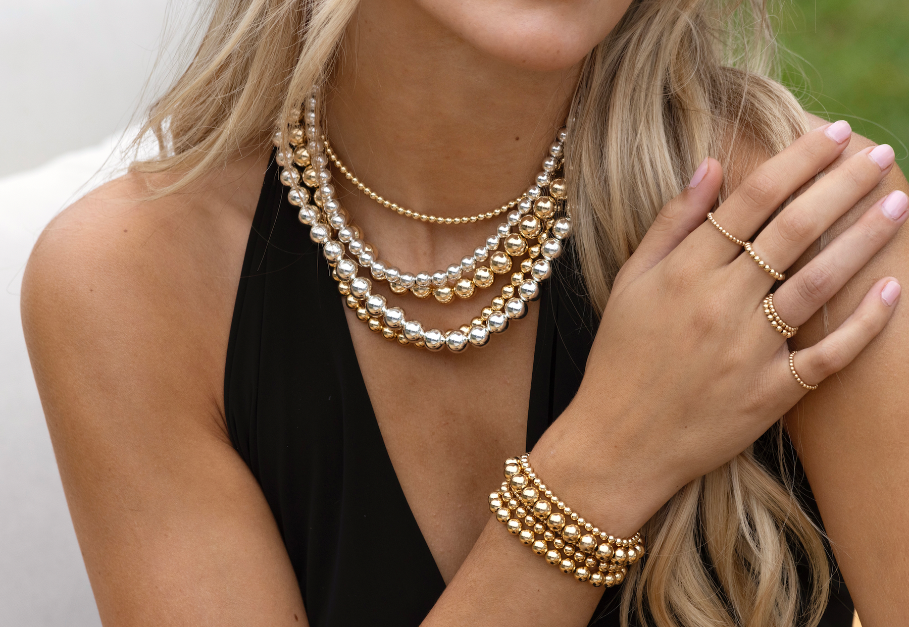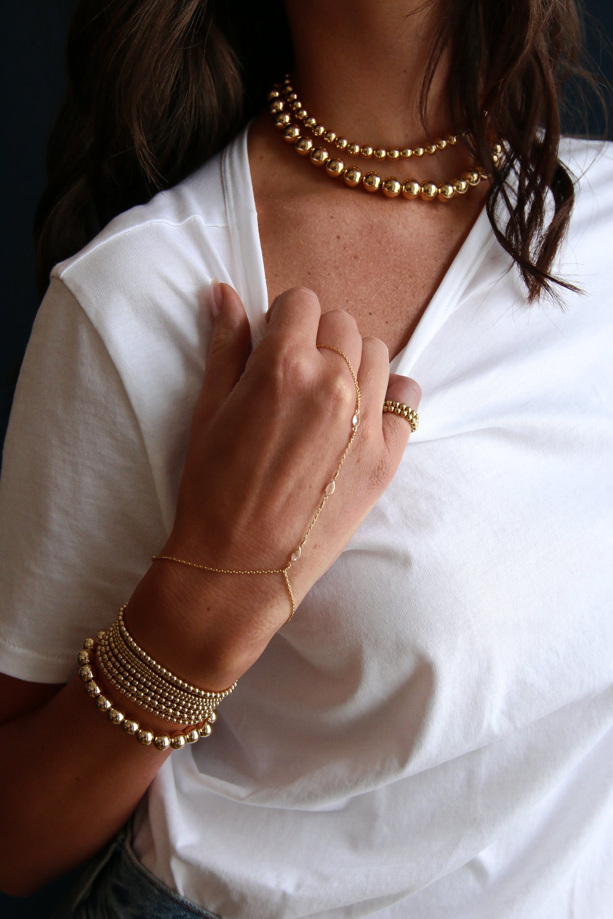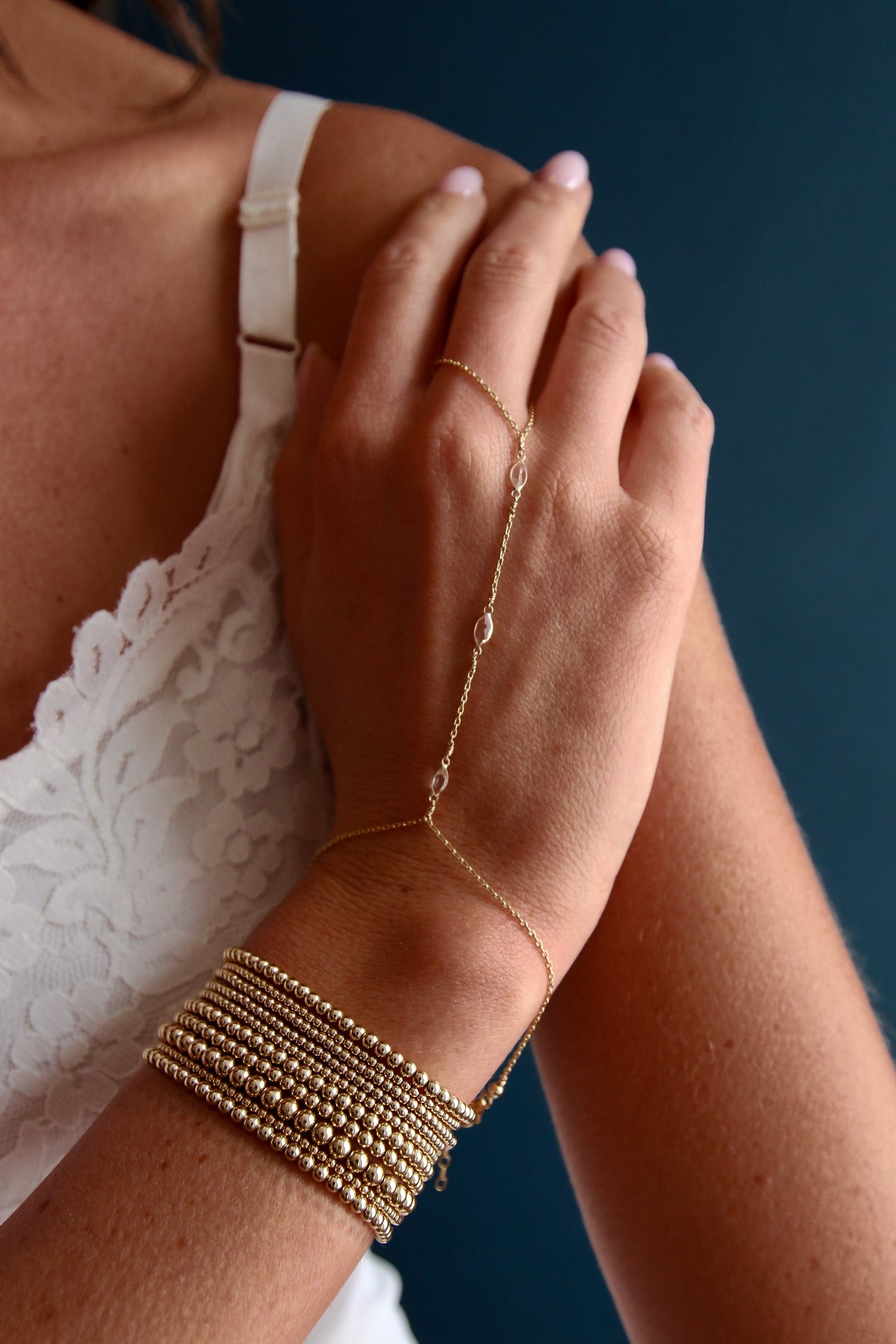 Strung on an elastic cord, offering a slight stretch