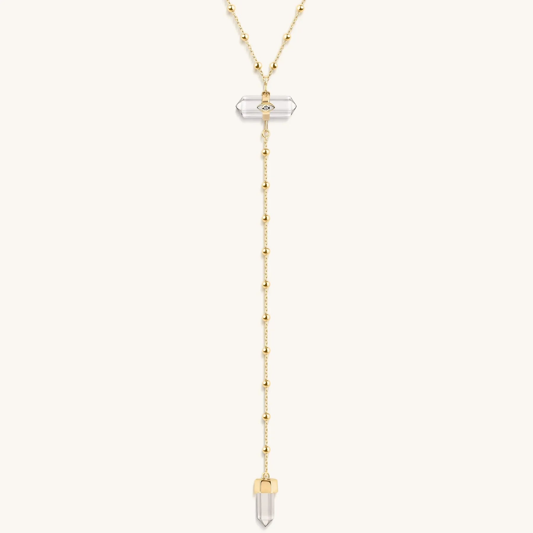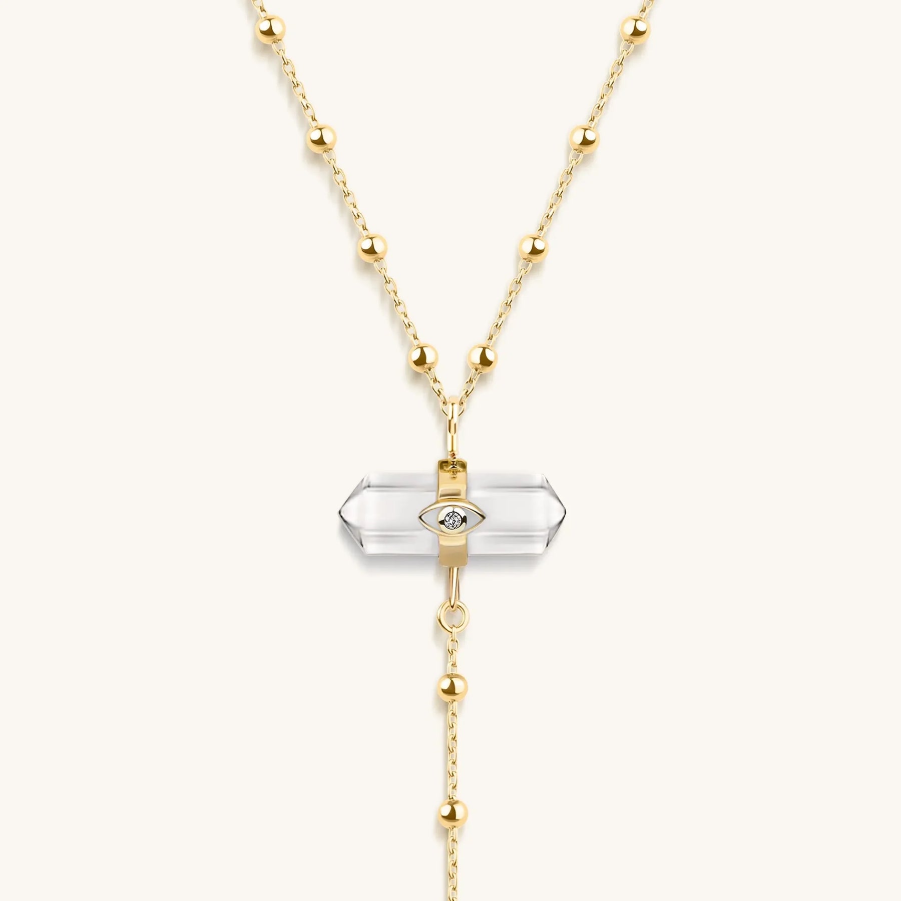 Clear Mind - Crystal Quartz Gold Evil Eye Necklace