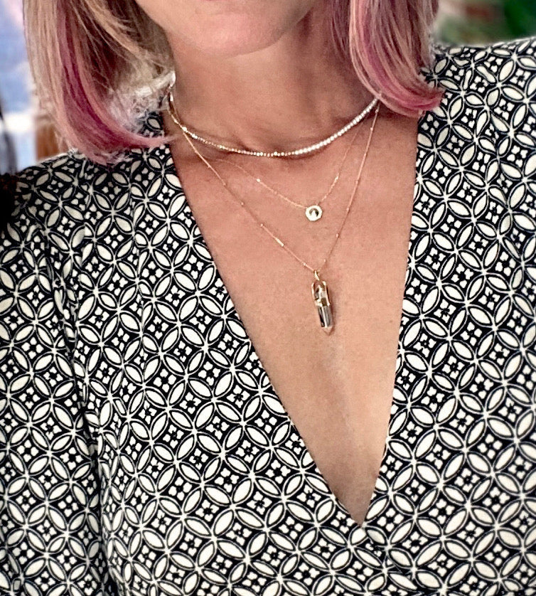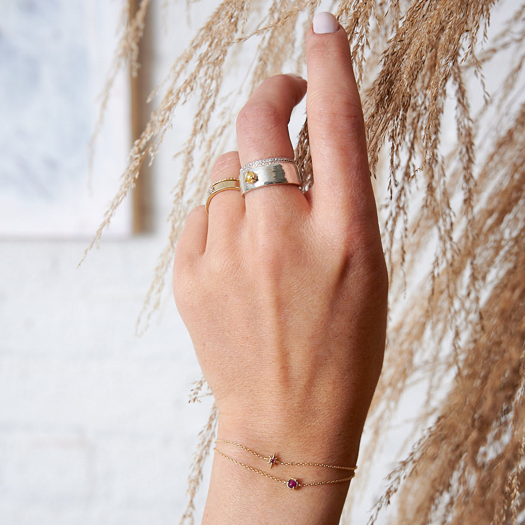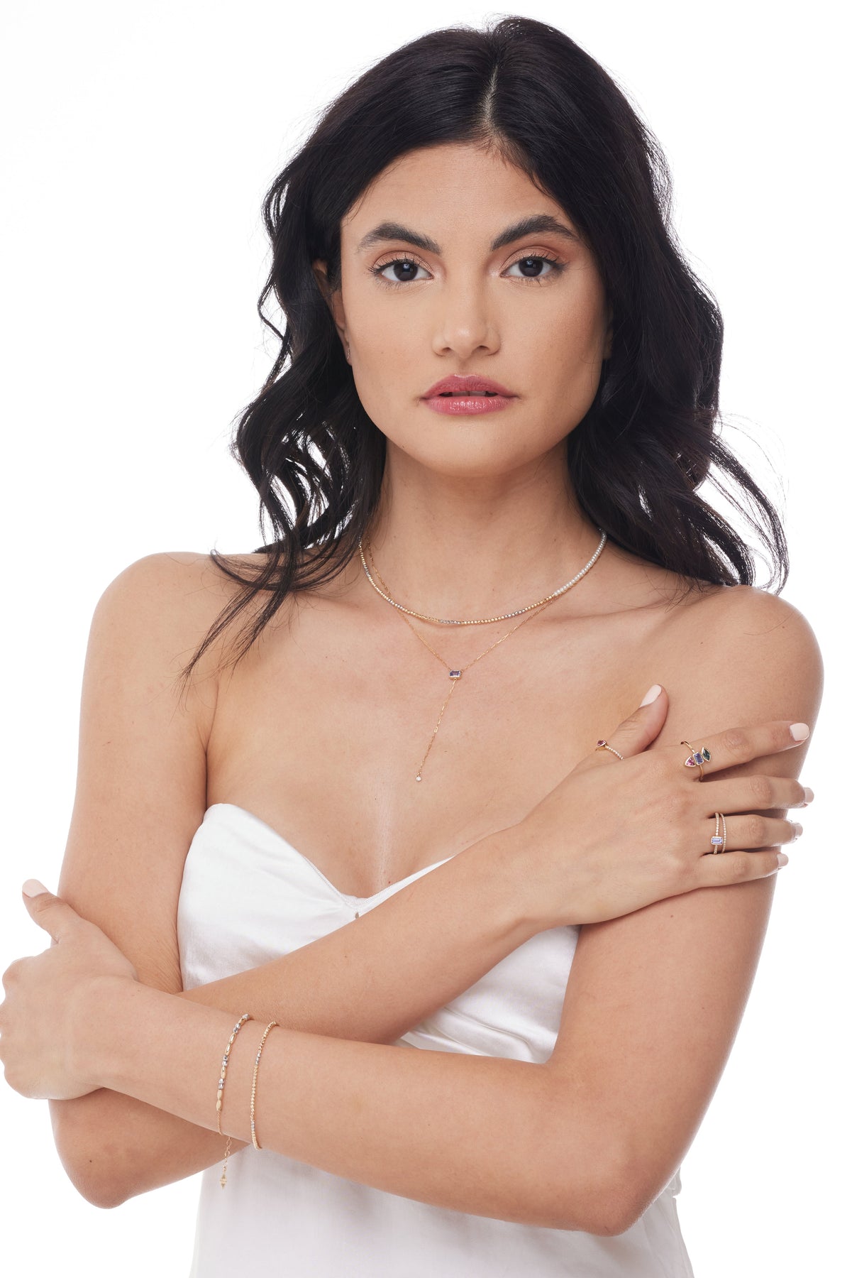 We’ve enhanced our classic Eternity band, already dazzling with pavé diamonds, by adding a trillion-cut Pink Tourmaline gemstone as part of our Knife Edge Gemstone Collection. Known for amplifying love—both for others and yourself—compassion, and emotional healing, Pink Tourmaline makes this ring an essential piece you’ll want to wear every day. It’s brilliantly sparkly without being overwhelming, beautifully dainty and feminine when worn alone, and makes a fabulous statement layered with other rings. Pair it with our diamond-only eternity bands for a stunning, personalized stack. ***Please note: Stones are natural and may vary slightly in color, making each piece uniquely yours.